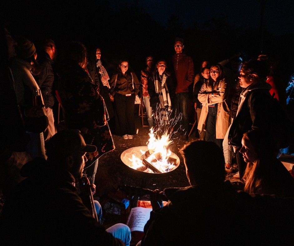 Následoval social program v uvolněnější atmosféře. U ohně se zpívalo, hrálo na kytaru a nechyběla ani Kempovská tradice – házení přáníček do ohně. Každý napsal své přání nebo vizi do budoucna. Jedno odevzdal nám, aby na něj při další návštěvě Kempu mohl zavzpomínat a druhé odevzdal plamenům.